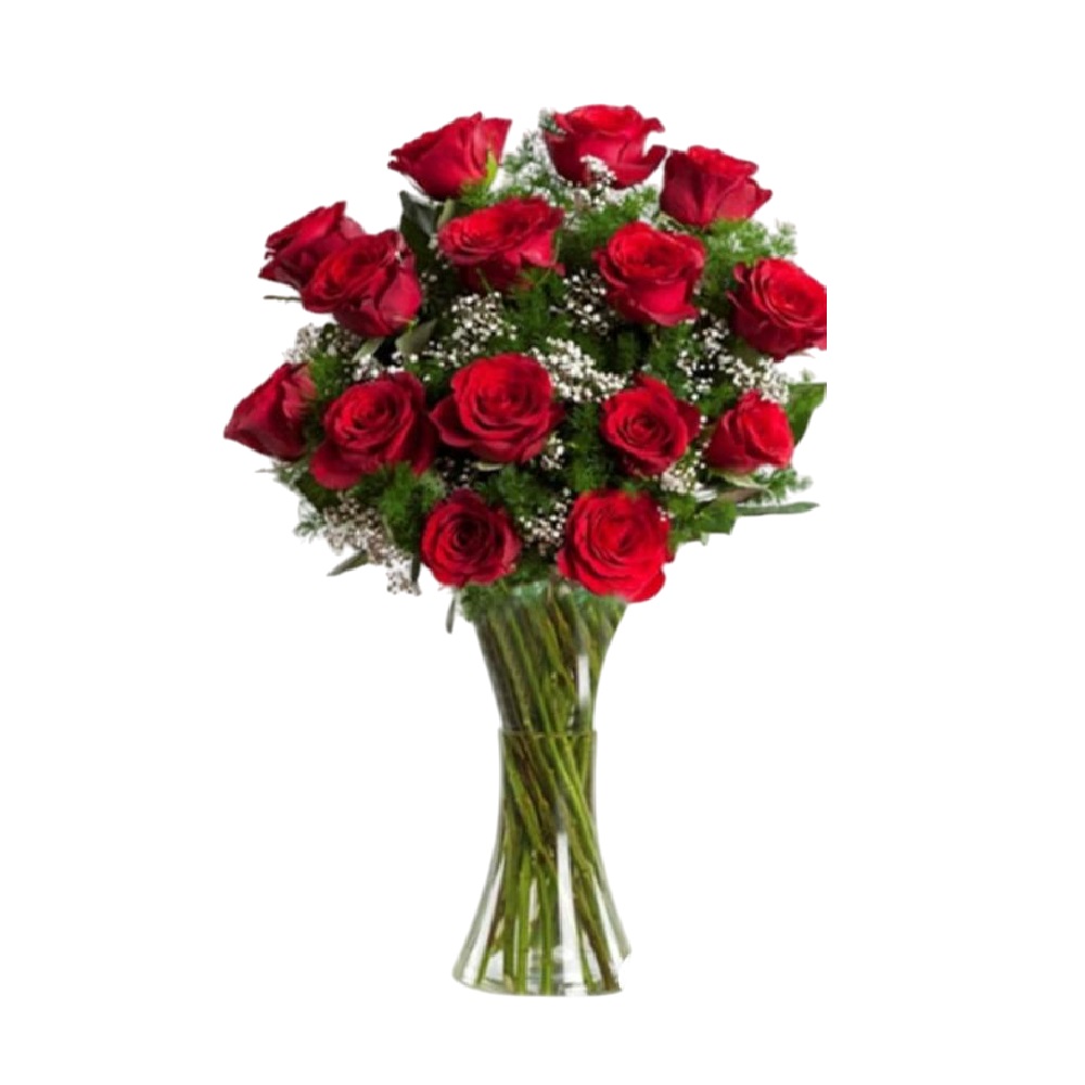 JARRÓN CON 24 ROSAS ROJAS Y YIPSO II