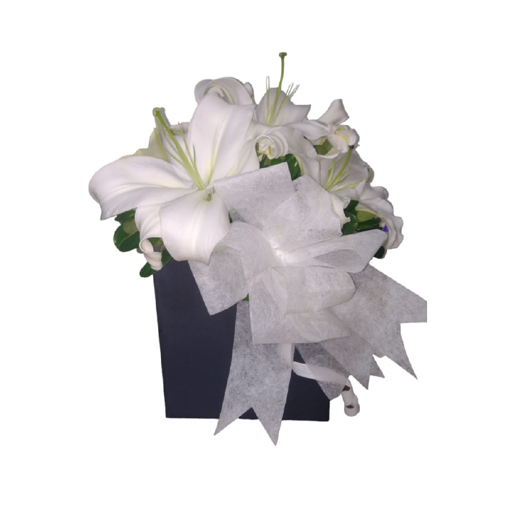 RAMO DE FLORES EN CAJA CON LIRIOS BLANCOS